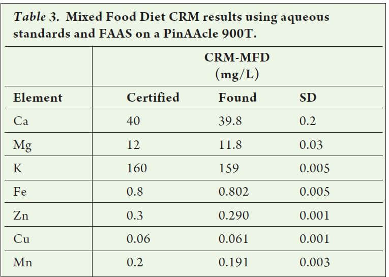 این روش نشان دهنده توانایی سیستم جذب اتمی شعله و کوره PinAAcle 900T در اندازه گیری دقیق مواد معدنی در هر دو قرص تجاری و رژیم های شبیه سازی غذا است.