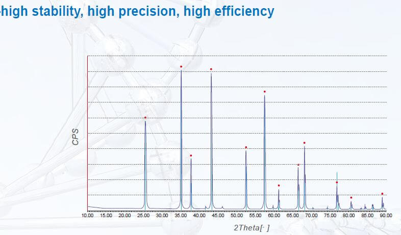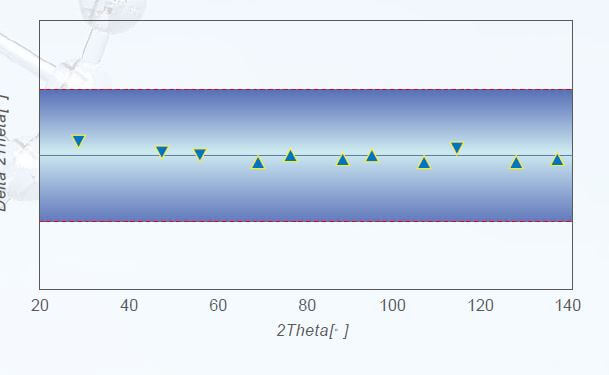 When using the national standard sample for on-site detection, the 2θ angle deviation of all peaks in the whole spectrum range ±0.02° within the diffraction angle measurement range, showing Excellent excellent angular deviation linearity