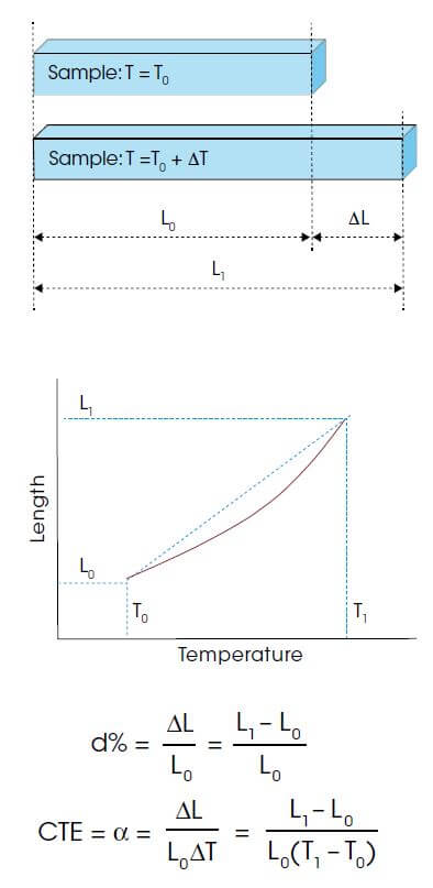 تغییر خطی کسری به ازای درجه تغییر دما، ضریب انبساط حرارتی خطی نامیده می شود و به صورت اختصاری CTE یا با حرف یونانی a نشان داده می شود.
